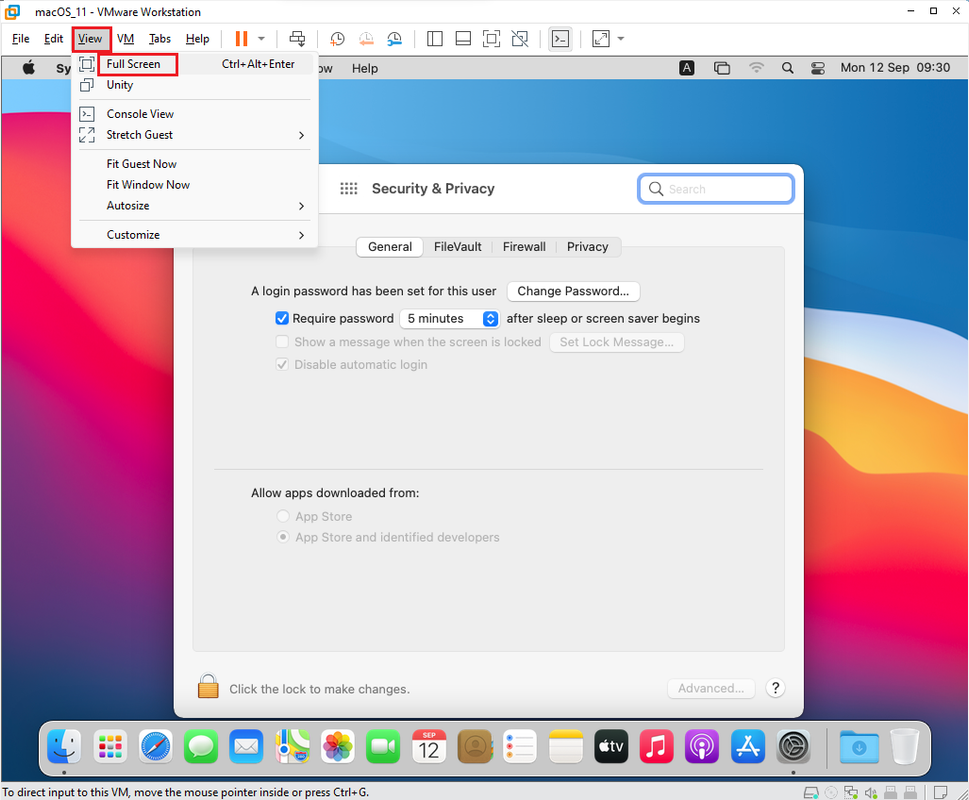 c. Dùng Full Screen cho máy ảo macOS