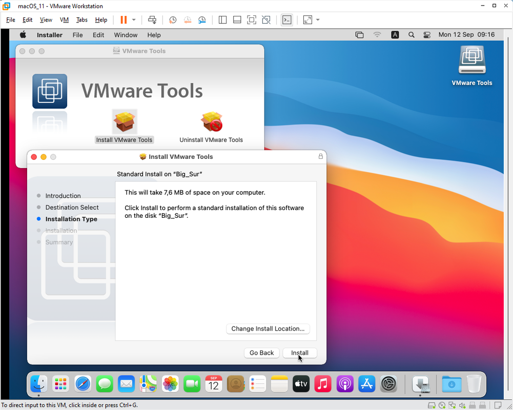 a. Khởi động lại VMware và bắt đầu cài đặt macOS