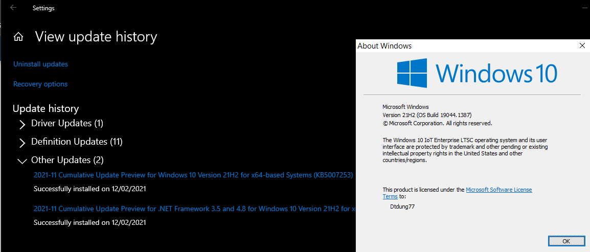 Windows 10 IoT Enterprise LTSC 2021 With Store build 19044.1379 đã cập nhật KB5007253 mà vẫn chưa lên build 1387 bác nhỉXem phần đính kèm 30289Xem phần đính kèm 30290