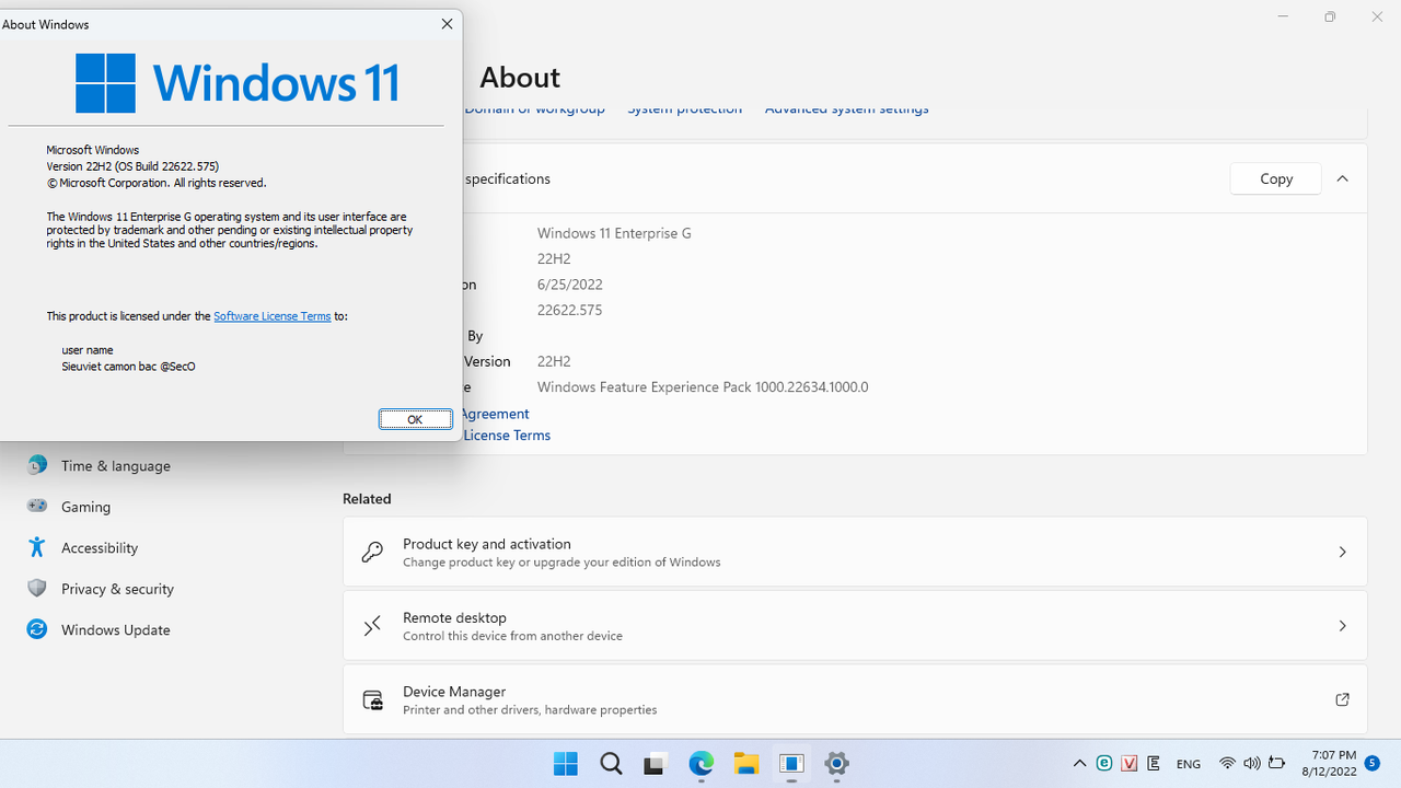 Báo cáo các Bác, em lên rồi ạ Windows 11 22h2 build 22622.575(Beta Channel) Windows 11 22h2 build 22622.575